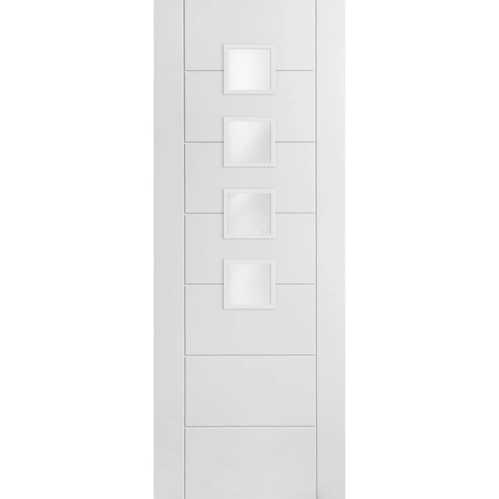 White Internal Primed Pedrena 7 Panel 4 Light Obscure Glass Made-to-Measure Door (120520)